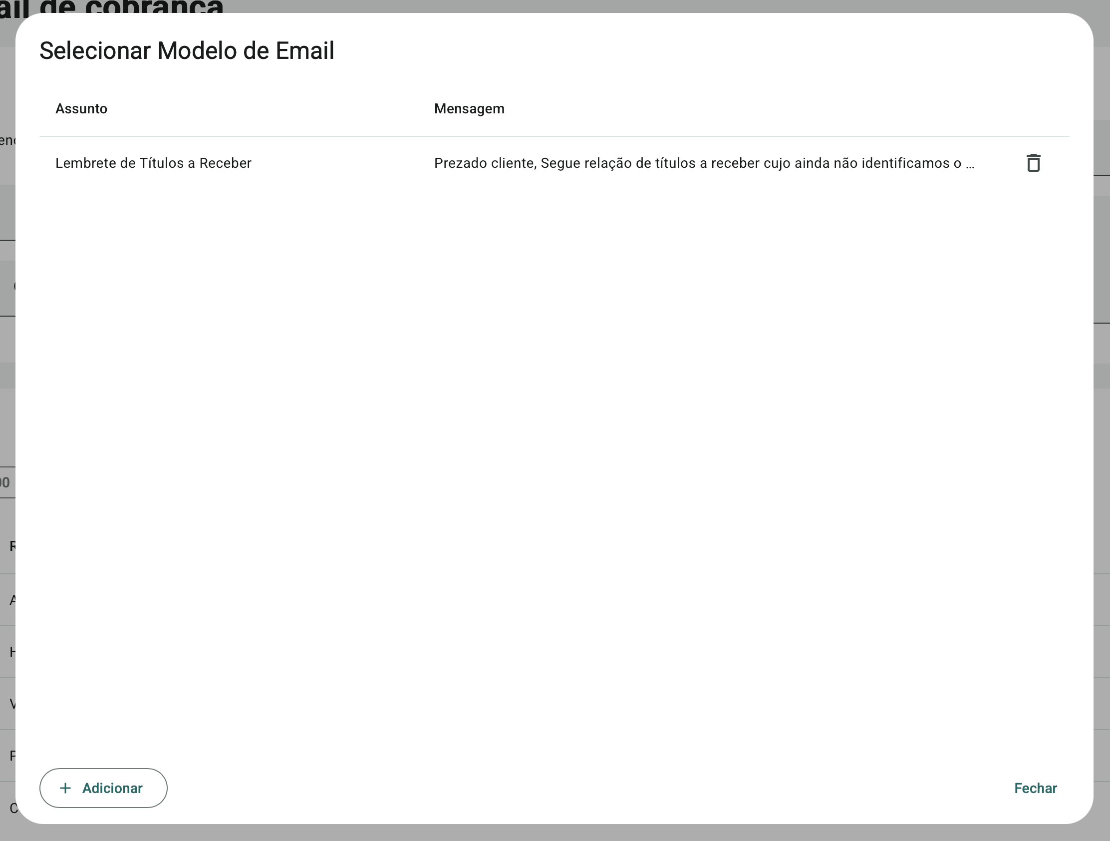 - E-mail de Cobrança — envio manual ou automático de e-mails de cobrança com base em templates pré-definidos